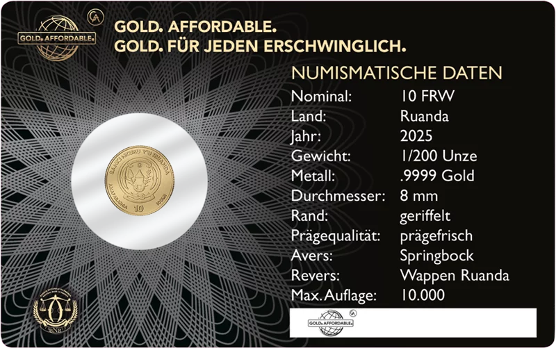 1/200 Unze Gold Ruanda Icons of the World - Springbock 2025