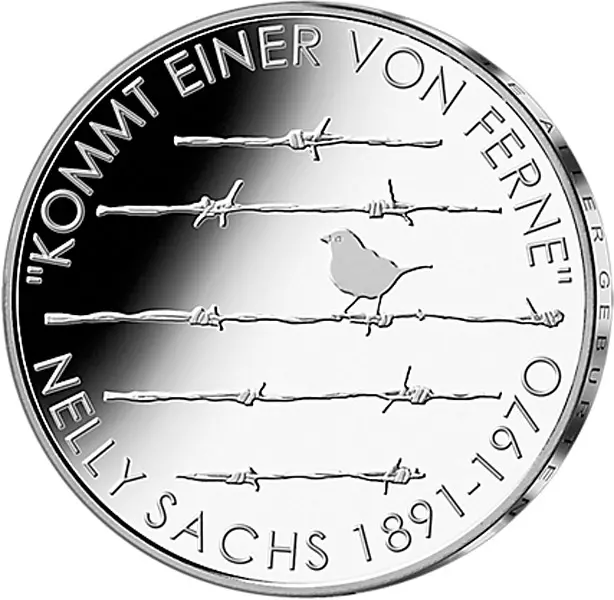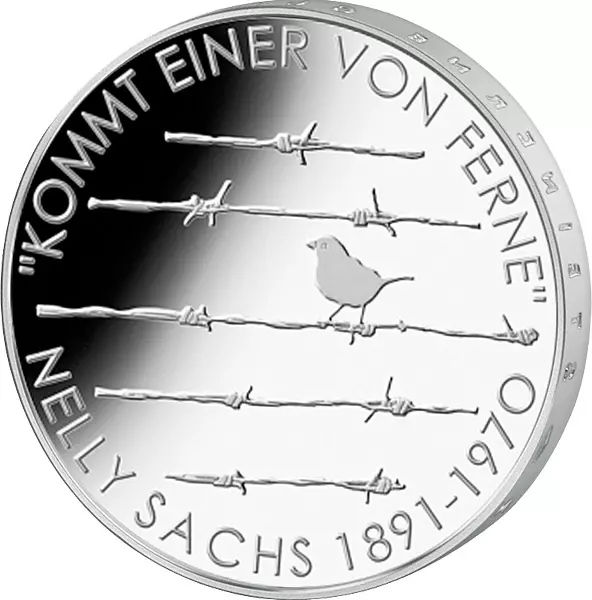 Nelly Sachs war eine deutsche Schriftstellerin und Lyrikerin, die sich aufgrund ihrer jüdischen Wurzeln während und nach der Zeit des Nationalsozialismus eingehend mit dem Schicksal des jüdischen Volkes in ihren Werken auseinandersetzte. Für diese Arbeiten erhielt sie im Jahr 1966 den Literaturnobelpreis – wenige Jahre später, 1970, verstarb Nelly Sachs aufgrund einer Krebserkrankung. Nun feiert die Münzwelt den 125. Geburtstag jener großen Schriftstellerin mit einer weiteren Ausgabe der brandneuen 20-Euro-Gedenkmünzen-Serie der BRD! Die Münze in feinem Sterlingsilber sollte in keiner guten Münzsammlung fehlen und gilt im Jahr 2016 als absolutes Muss für Euro-Sammler! Am besten also gleich zugreifen!