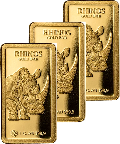 3 x 1 Gramm Goldbarren Gambia African Big Animals Gold Bars - Rhinos 2026
