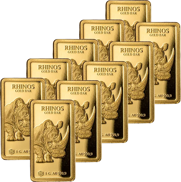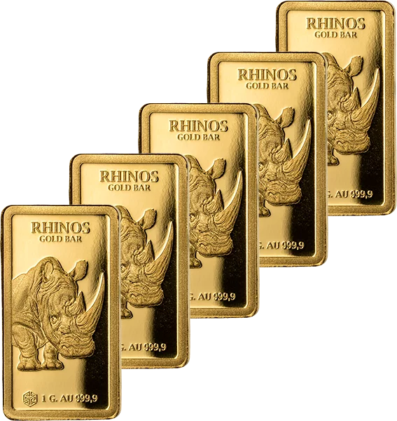 Kraftvoll geprägt: Goldbarren-Set mit Nashorn-Motiv