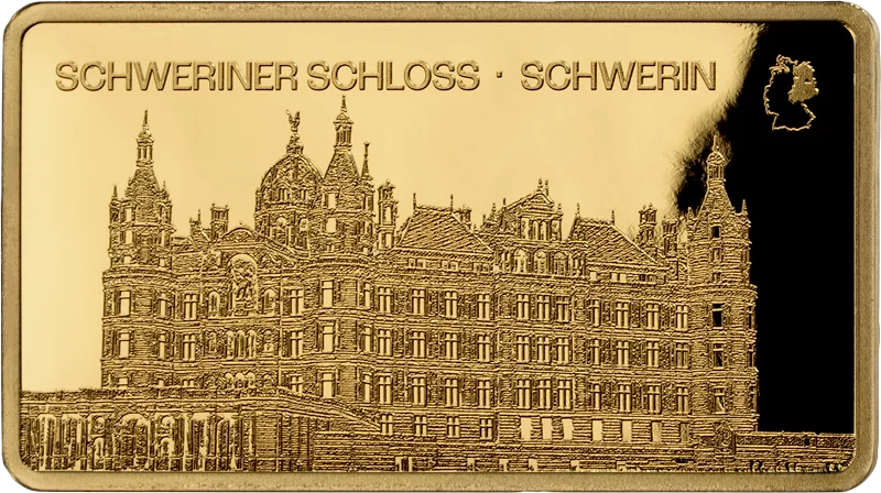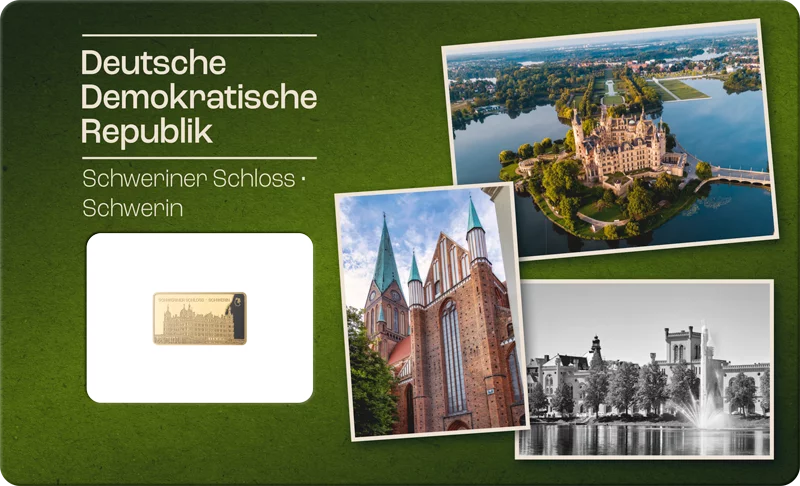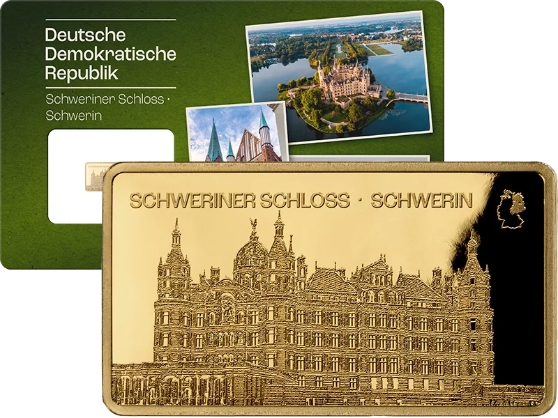Einst die Hauptresidenz der Herzöge und Großherzöge von Mecklenburg-Schwerin, ist das Schweriner Schloss heute eine der beeindruckendsten Touristenattraktionen Deutschlands. Bis zur deutsch-deutschen Wiedervereinigung zählte die prunkvolle Schlossanlage zur DDR und war eine der bekanntesten Sehenswürdigkeiten des Bezirks Schwerin. Jetzt können Sie sich die Schönheit der ehemaligen DDR in Ihre Sammlung holen – und das auf reinem 9999 Gold!