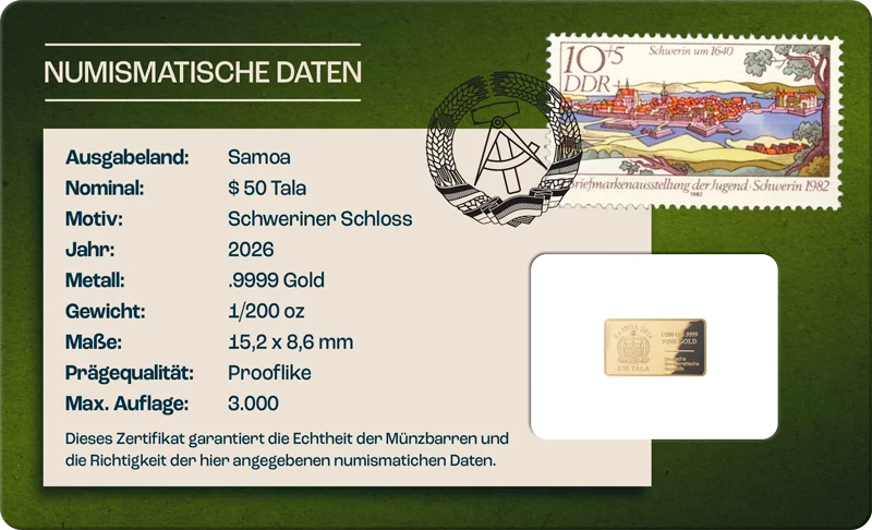 50 Tala Samoa Goldbarren DDR 15 Bezirke - Schwerin Schweriner Schloss 2026