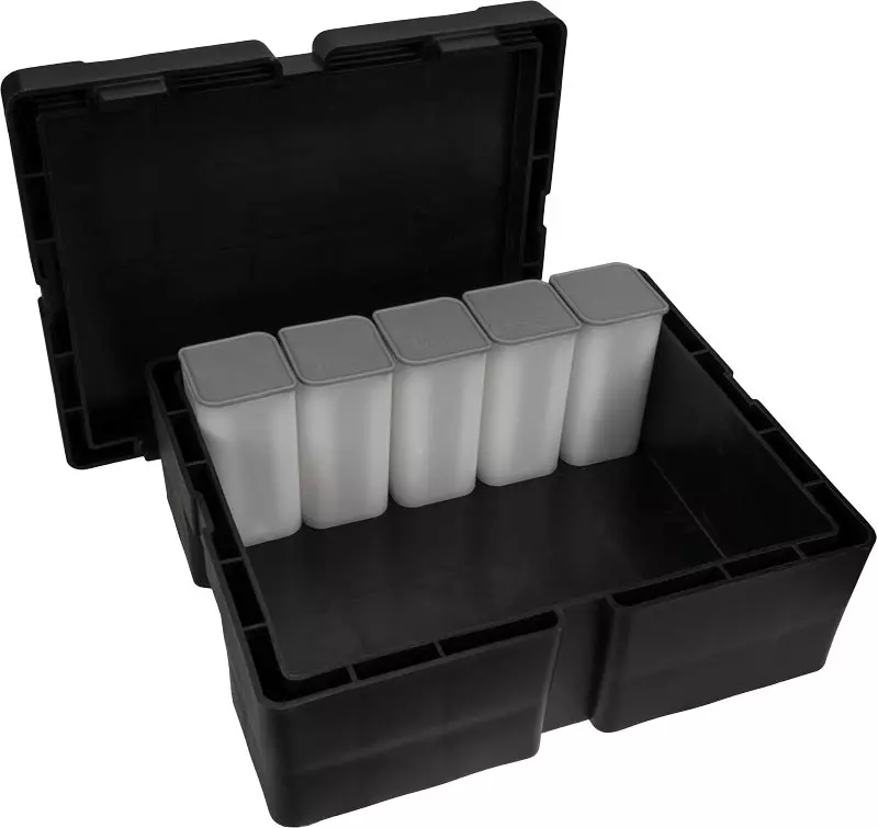 Die Masterbox der British Royal Mint bietet Raum für insgesamt 500 Britannia-Silberunzen (20 Münztubes zu je 25 Münzen). Bewahren Sie Ihre Anlageschätze sicher und geordnet auf.